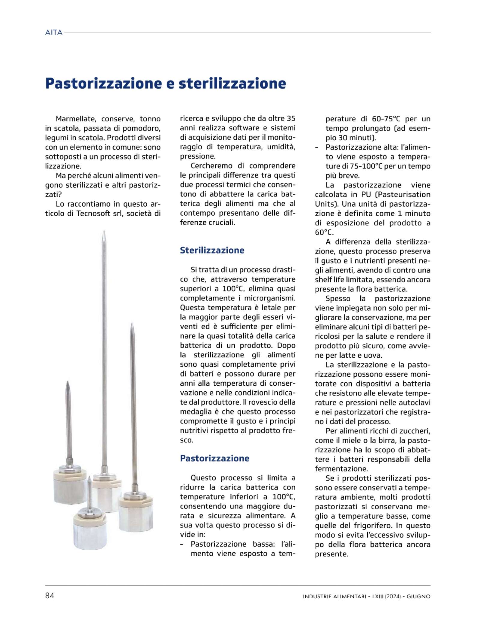 L'Associazione Italiana di Tecnologia Alimentare (AITA) ha recentemente pubblicato un articolo di Tecnosoft all'interno della rivista "Industrie Alimentari" del numero di giugno.